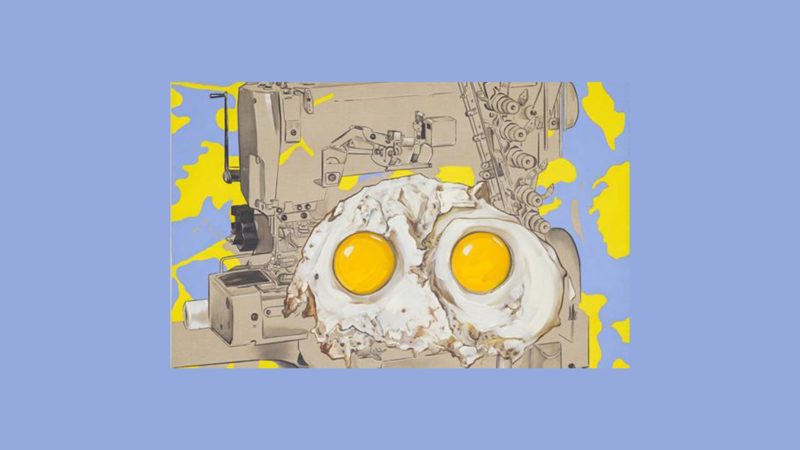 Dans l'univers du prêt à porter la "Secretary Blouse" désigne un chemisier classique, si ce n'était la présence d'un large nœud au niveau du col. C'est sous cette appellation qu'Armand Jalut (né en 1976) a décidé de présenter un ensemble conséquent de ses travaux pour son exposition au Château de Taurines. Produites ces derniers mois, ses nouvelles toiles ne sont pas sans rapport avec l'univers de la confection. Elles sont marquées par la présence de machines à coudre, des outils qui se télescopent avec des composants organiques et alimentaires : tranche de pamplemousse, œufs au plat, régime de bananes ou noix de coco. La vision machiniste s'y emboite avec une nourriture chromatiquement flatteuse, mais approximativement entrelacée entre le premier et le second plan. Deux exceptions iconographiques notables voient apparaître un dauphin et deux mouettes. Les profils de bouchon de radiateur des volatiles se disputent par leur angularité avec le biomorphisme de la machine. Leurs silhouettes, au plumage brossé, ne semblent avoir pour seul but que la frontalité de leurs regards, concomitamment voyeurs et autoritaires.